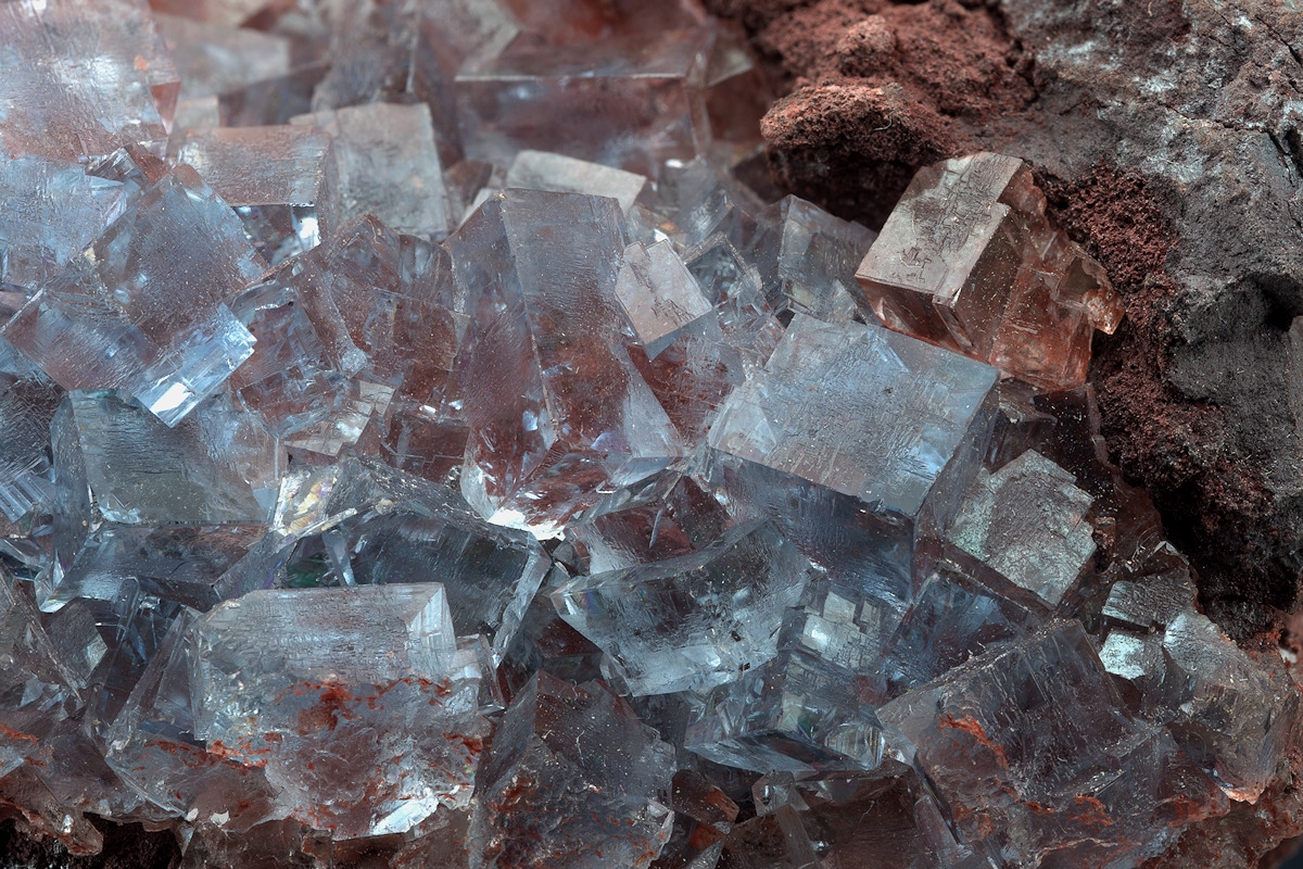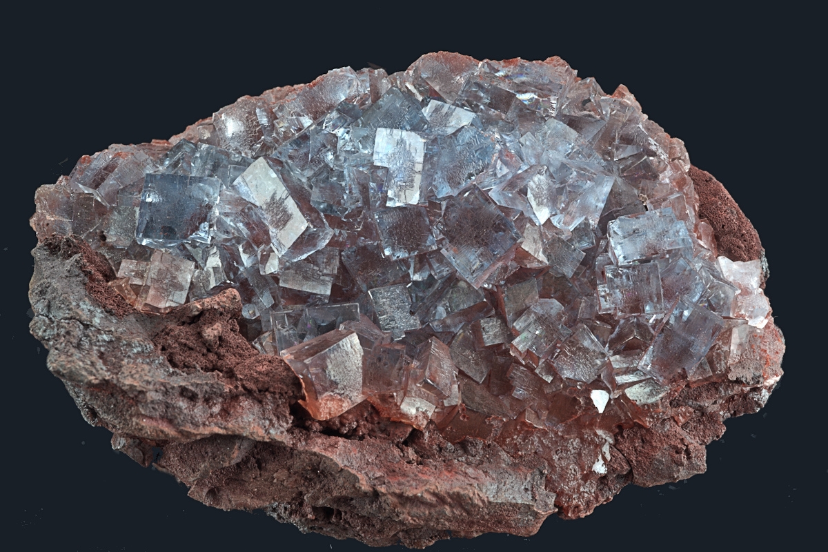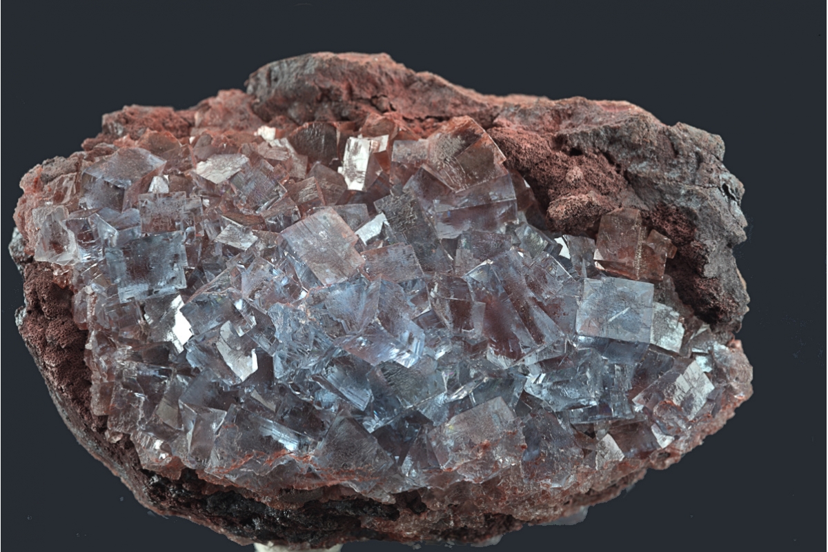 A choice blue fluorite specimen on hematite from Florence mine in west Cumbria, an iron-ore mine that finally closed in 2006.
