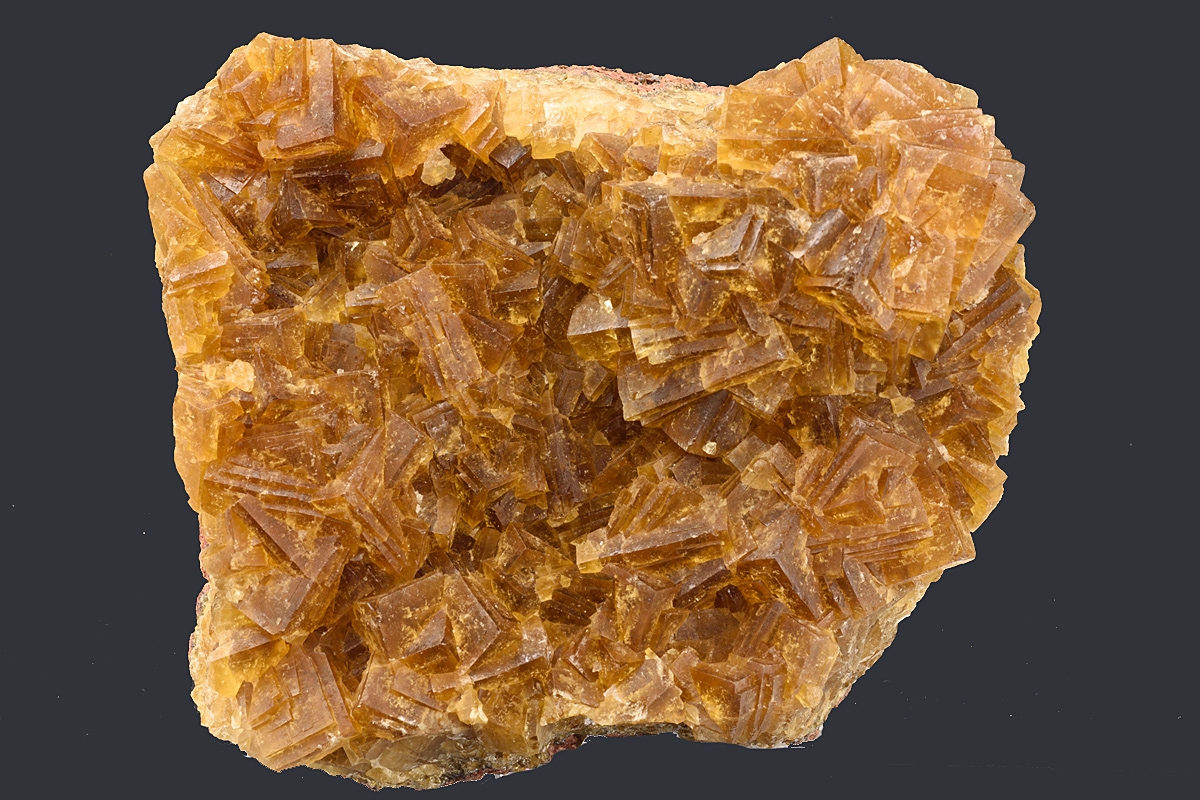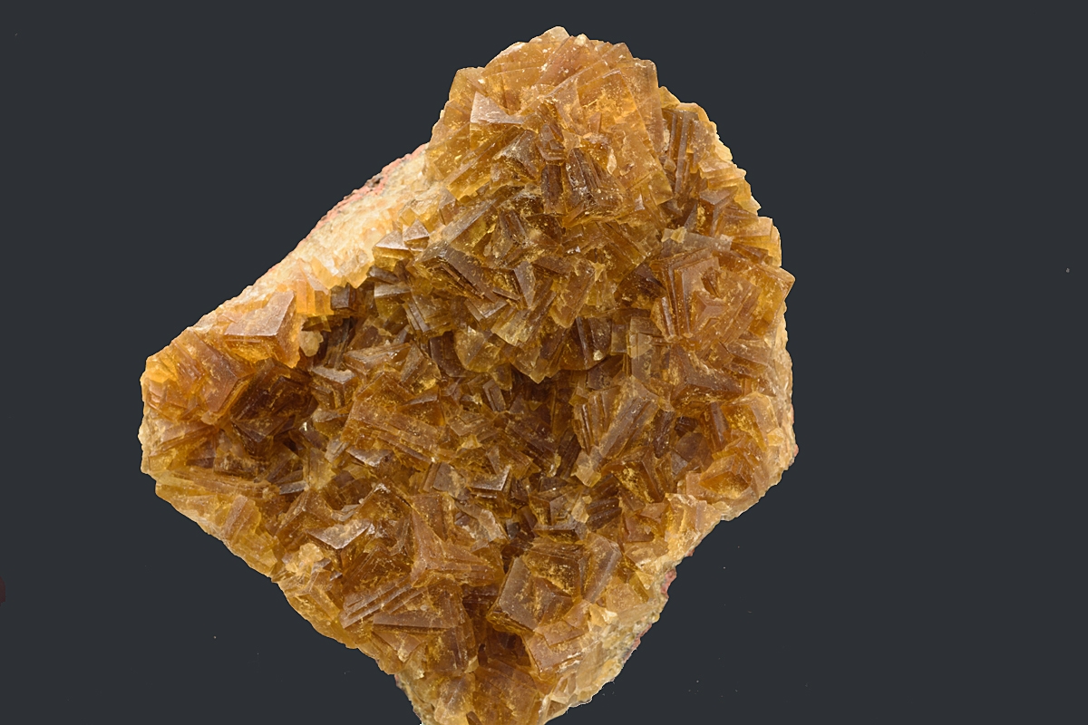 Choice fluorite display specimen of a dark yellow-brown colour, unique in Derbyshire and fluorescent in UV light. Crich quarry has been closed now for a number of years.