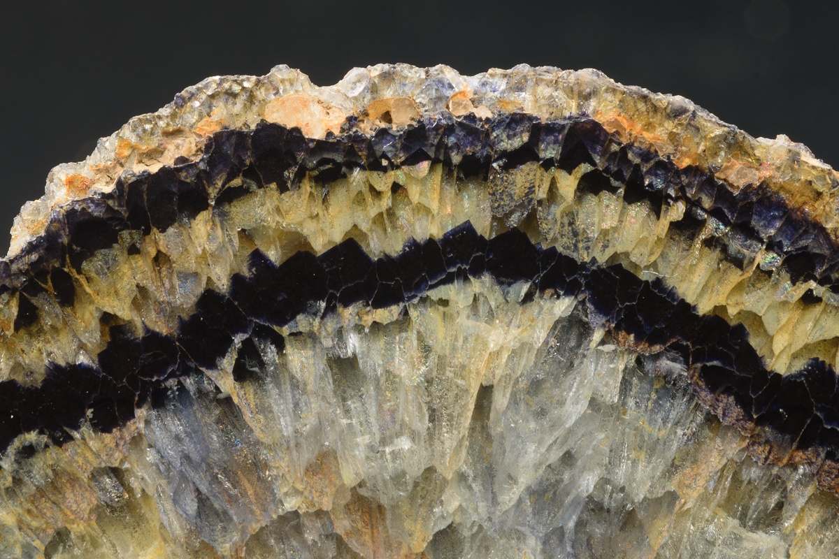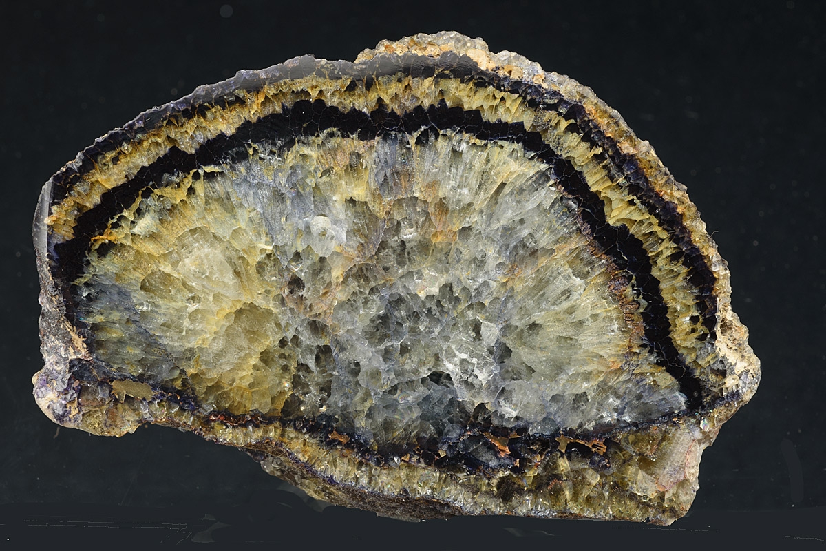 Finely polished section of 'Blue-John' fluorite showing clasic colour banding.