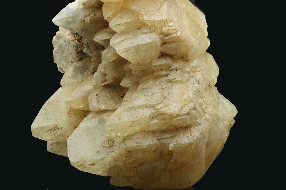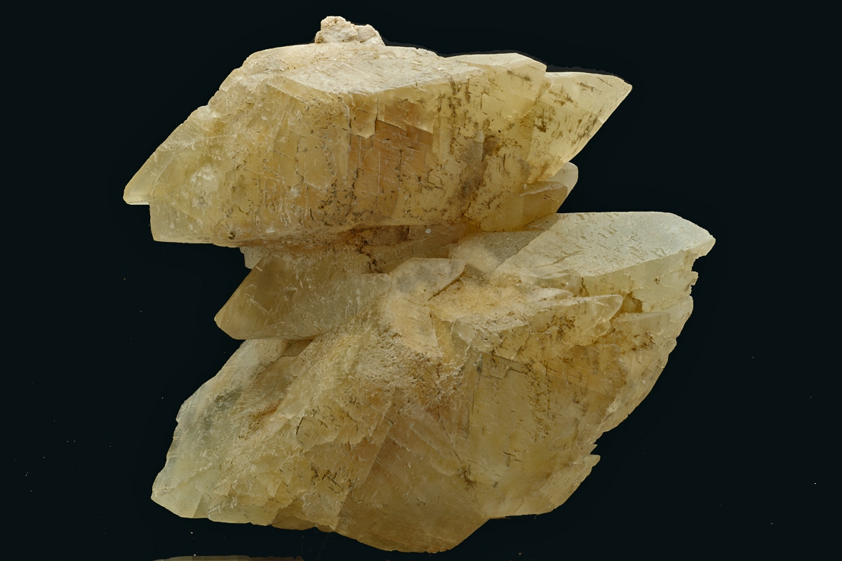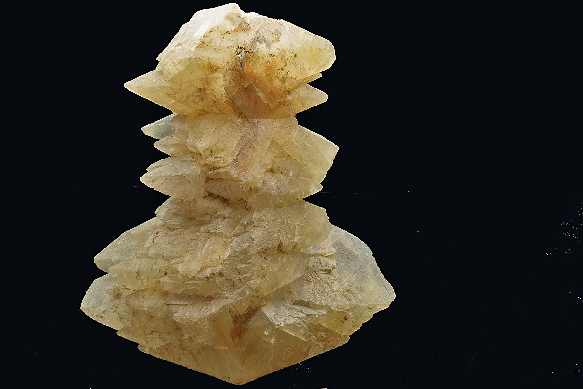 Derbyshire is famous for its large scalenohedral calcite crystals such as this one from Masson Hill quarry on the slopes of Bonsall Moor. Perfect for display, the specimen consists of a series of attached double terminated scalenohedral crystals in parallel oprienation forming a 17cm tall tower. Ex. Alan Wardman collection