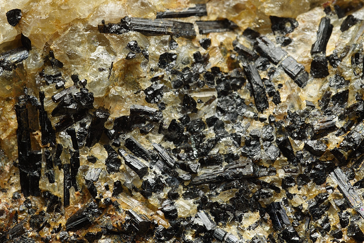 Formulas: Schorl tourmaline NaFe2+3Al6(Bo3)3(Si6O18)(OH)4 ; Muscovite KAl2(AlSi3O10)(OH)2