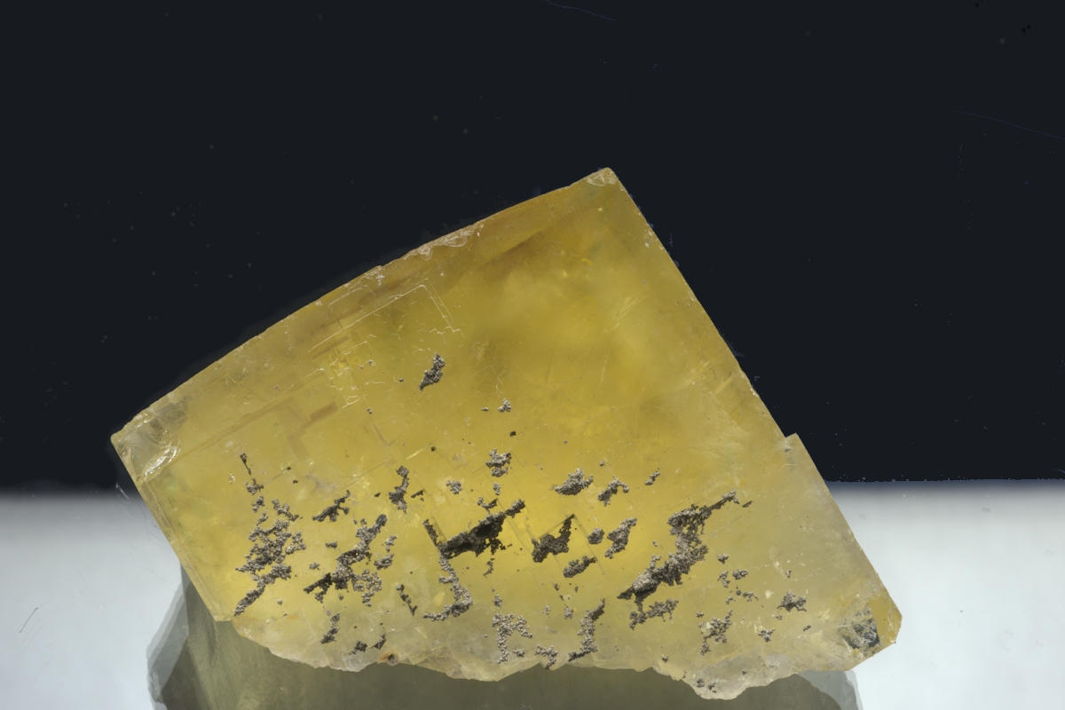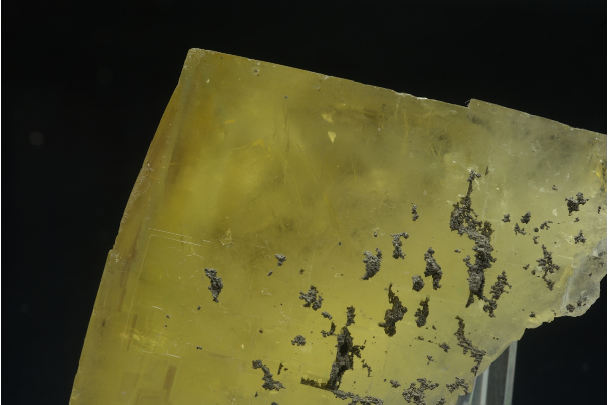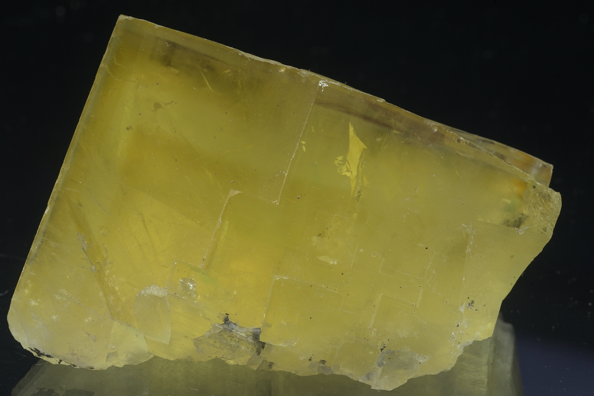 Deep yellow fluorite 66mm along edge of good lustre and transparency. Attractive specimen from the Roland Thomas collection.