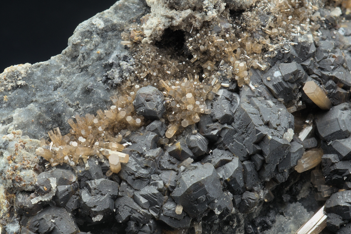 Unusual coloured pyromorphite from the find some years ago at Force Crag Mine on the 650 sub-level. The specimen exhibits beige to brown coloured pyromorphite crystals dotted in and around a bed of sphalerite crystals.