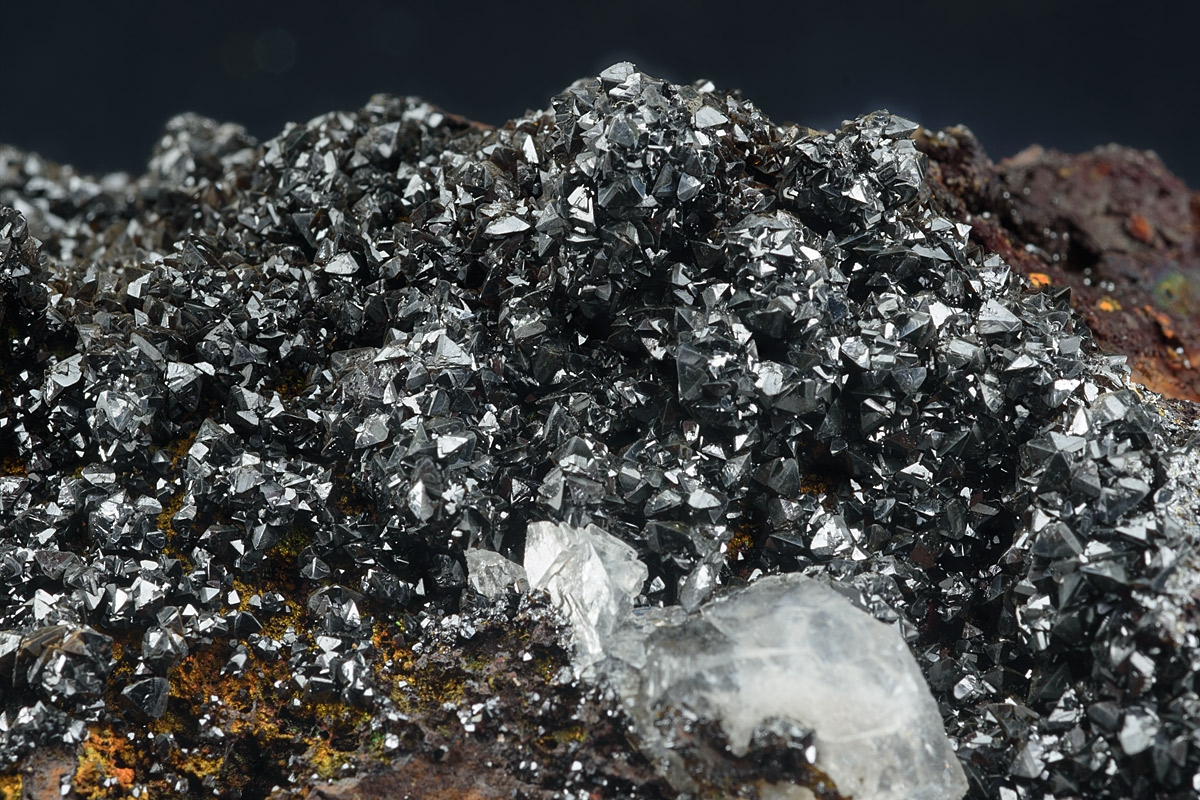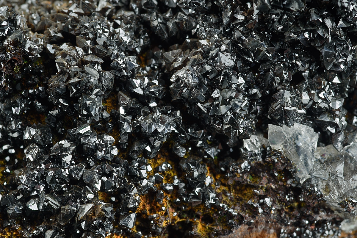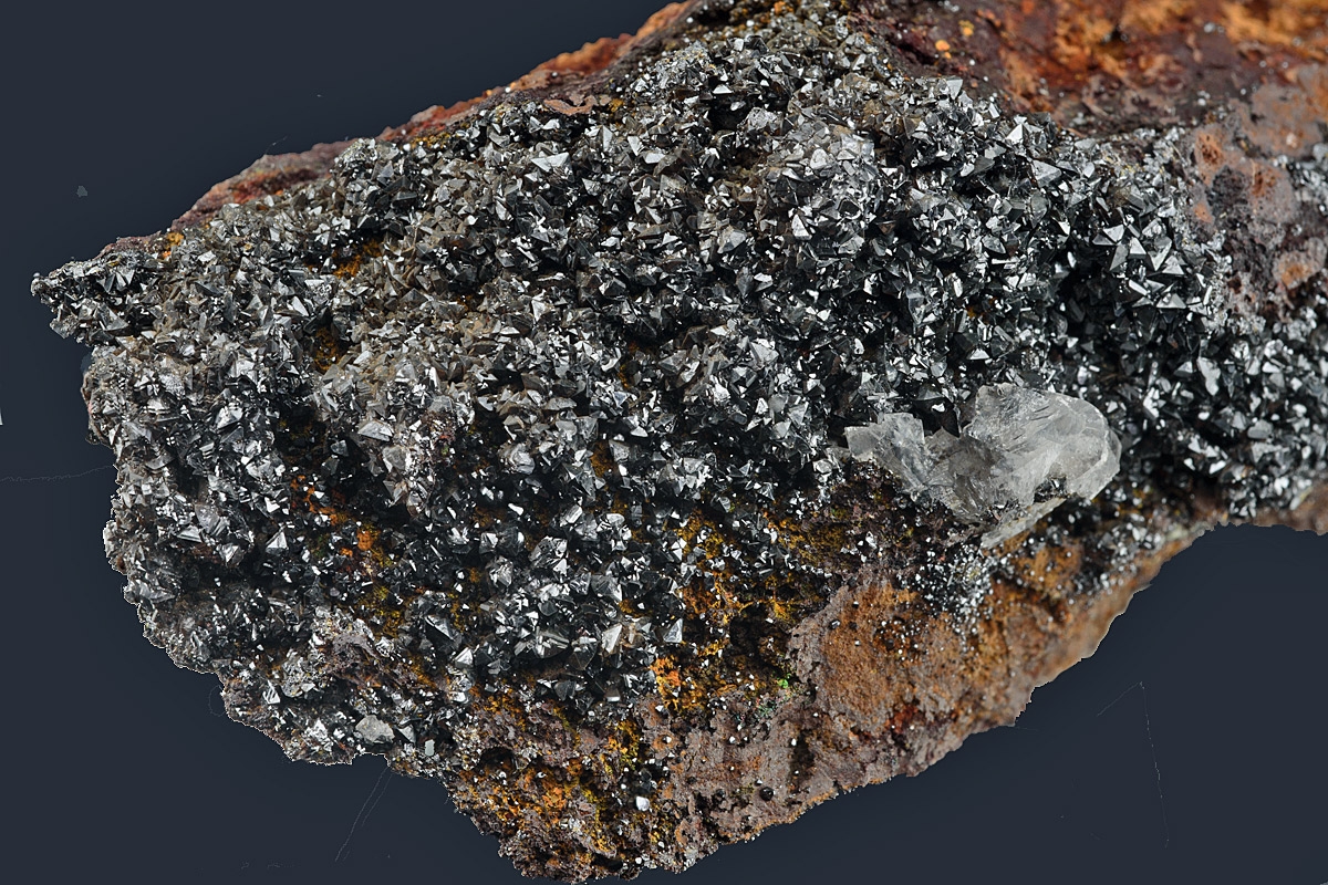 Bed of lustrous well formed descloizite crystals on a hard limonite matrix.
