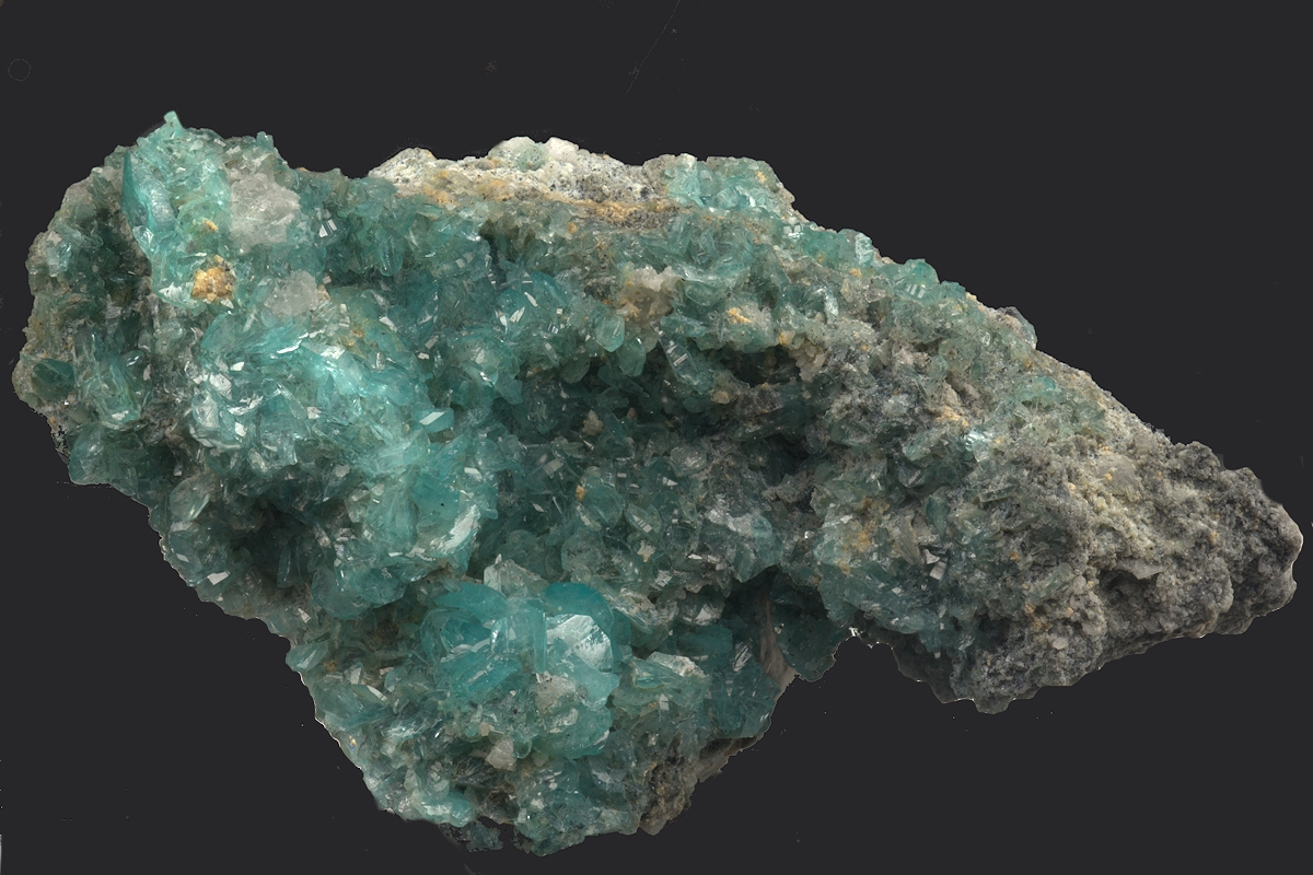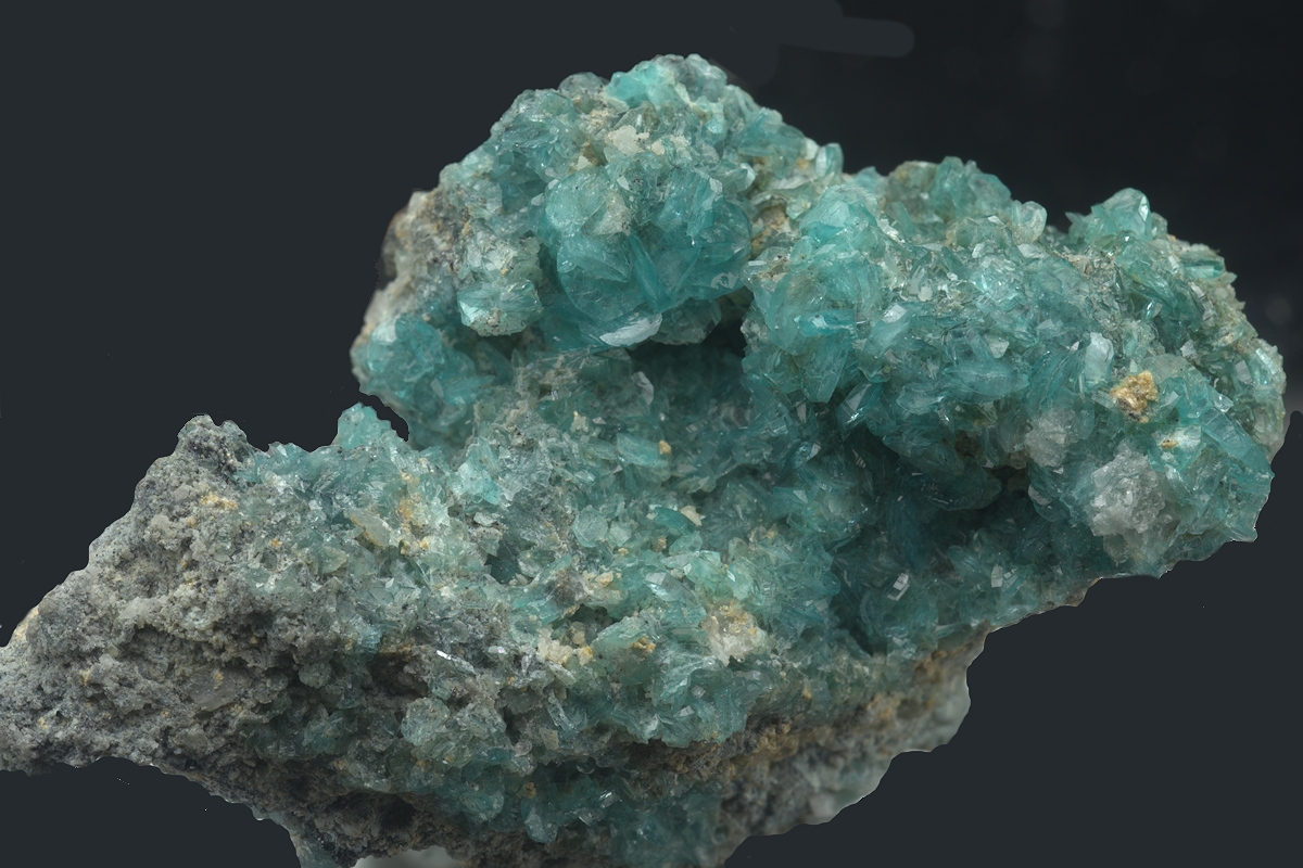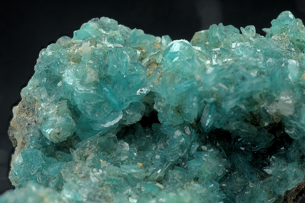 Choice specimen from a recent find in Mexico of this rare borate. The monoclinic crystals are well formed and exhibit an exceptional transparent sky-blue colour.
