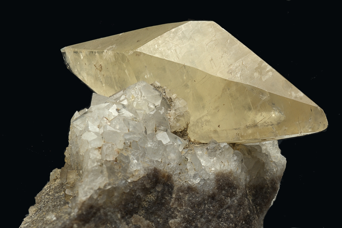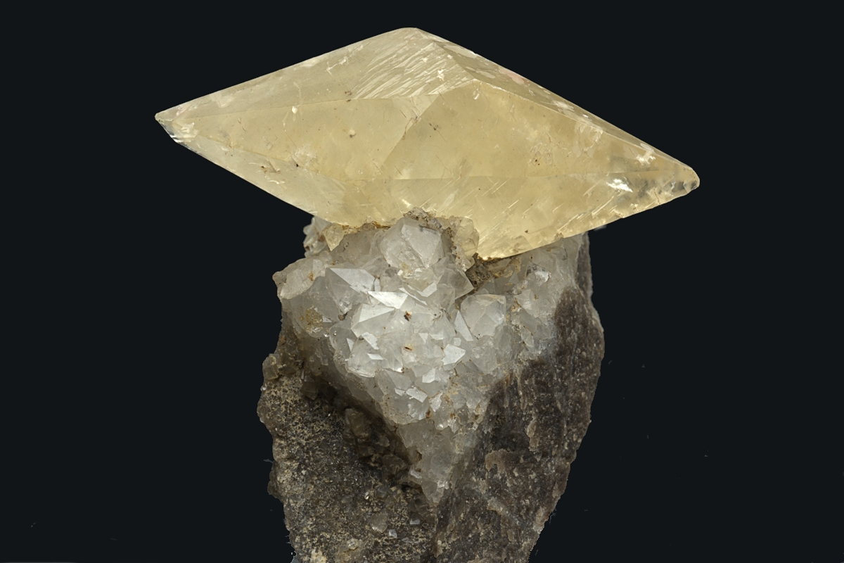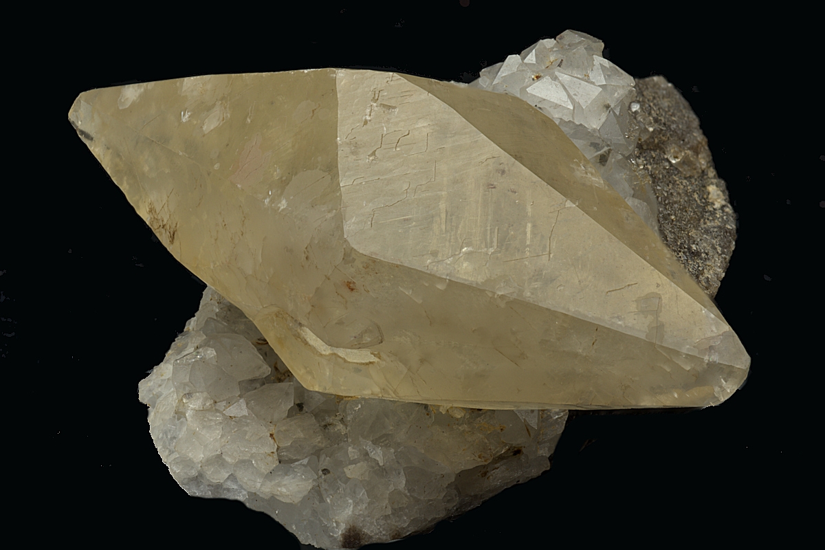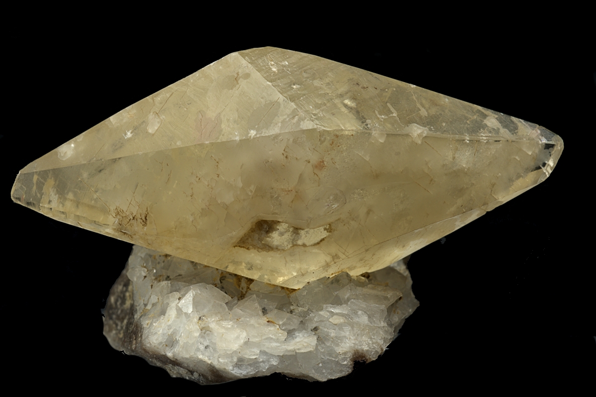 A choice double terminated calcite crystal 45 mm across with good transparency and lustre. Collected in the 1980's. Ex.George Batey collection.