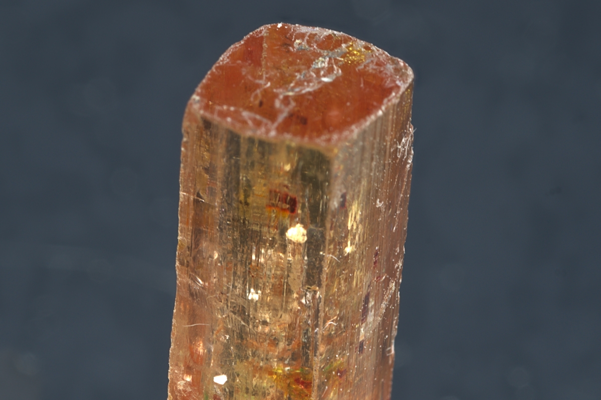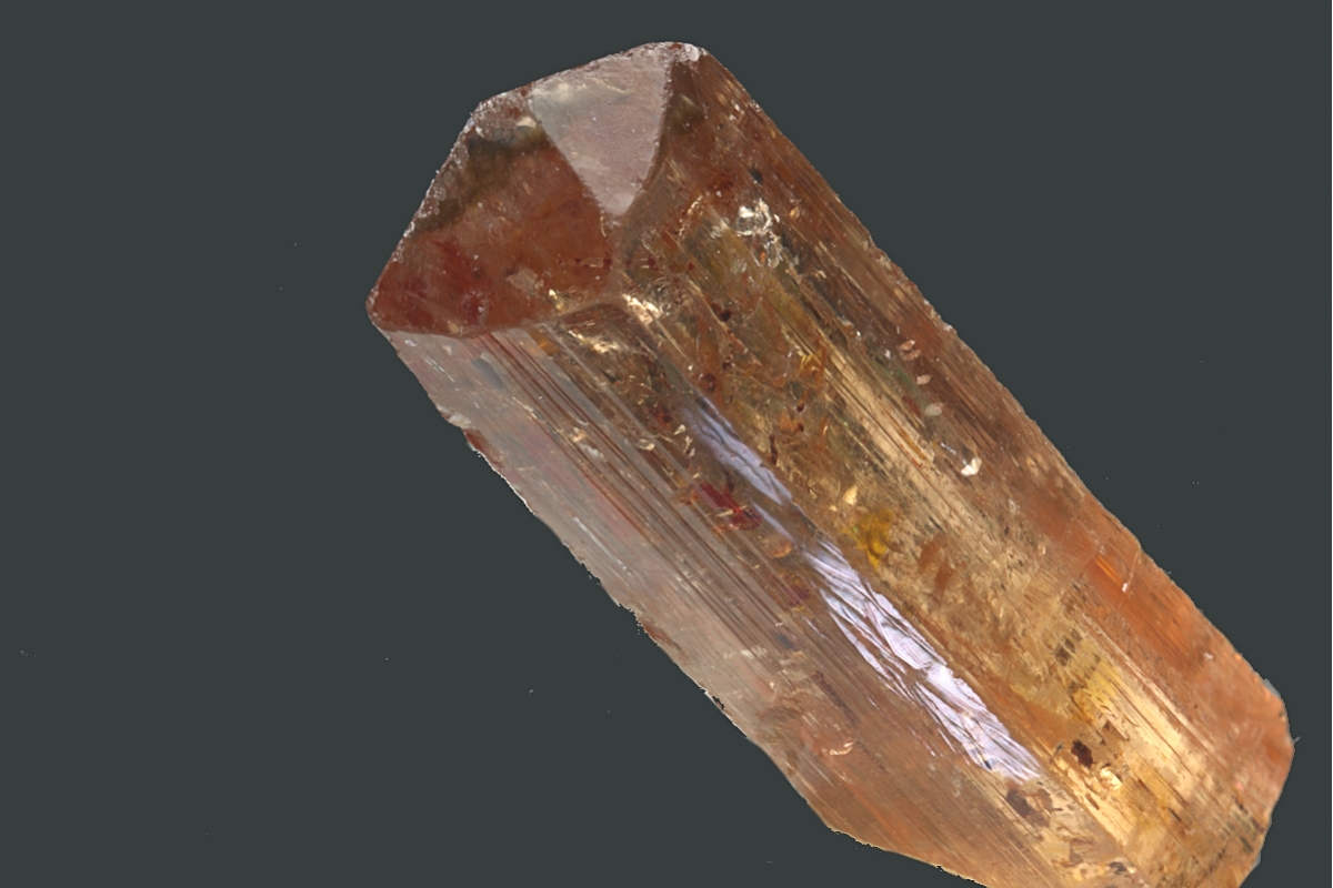 A single gemmy imperial topaz crystal with good colour and transparency. Doubly terminated.