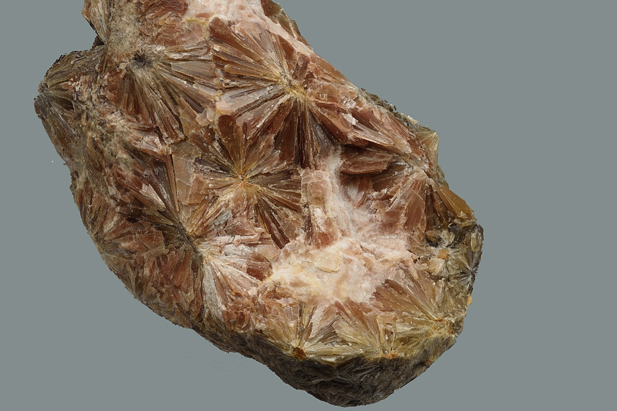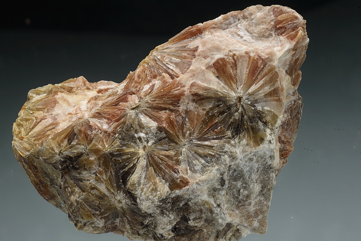 The Eden Valley gypsum (selenite) mines produced this interesting form of gypsum with stellate groups of crystals formed around seeding points creating attractive flower like patterns - 'Daisy Bed' gypsum.