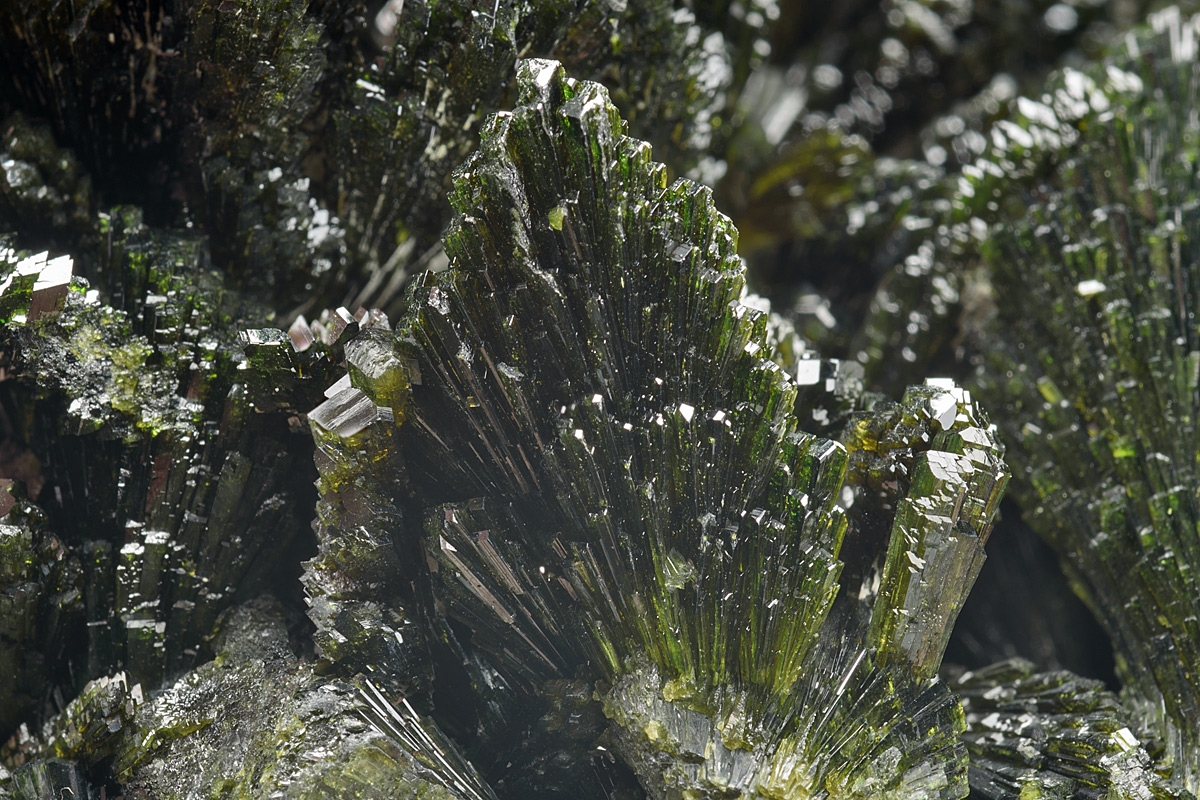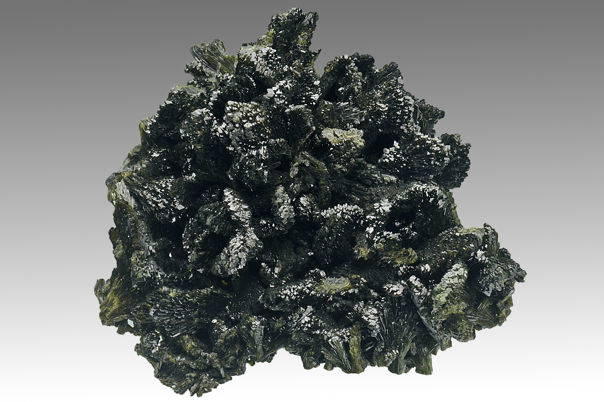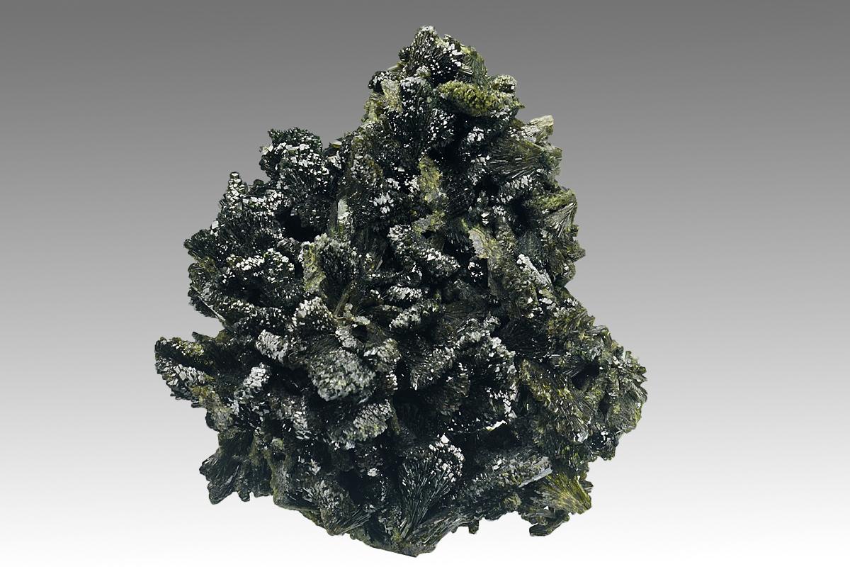 Attractive, display quality epidote specimen of high lustre consisting of broad bladed crystals formed from smaller aggregated acicular crystals. Some blades missing but little noticable on a specimen of this size. Ex. Nick Hawes collection.