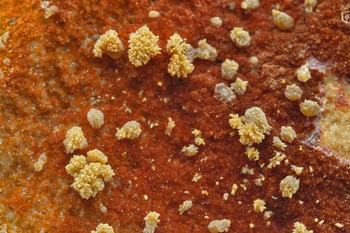 Formulas: Descloizite: PbZn(VO4)(OH); Vanadinite Pb5(VO4)3Cl