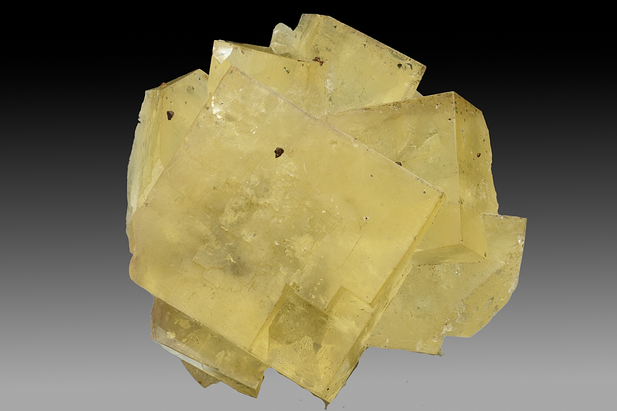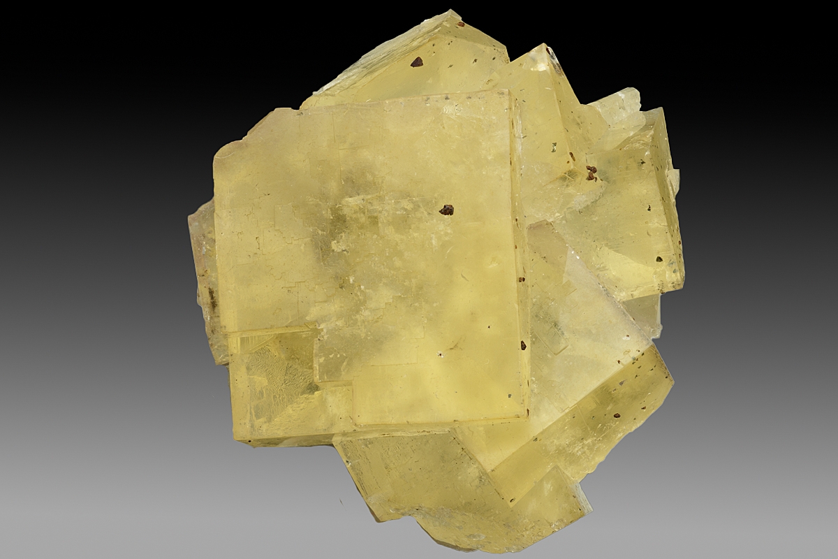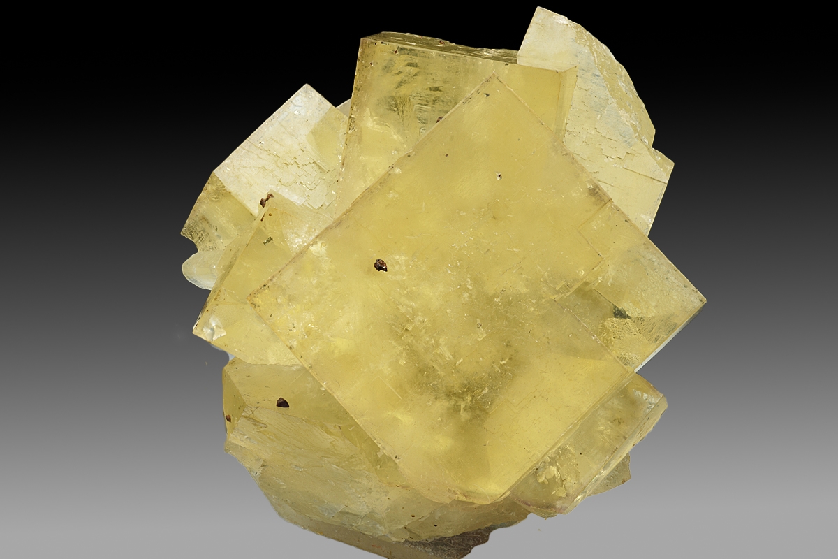 Group of lustrous interlocking fluorite crystals from this famous Wensleydale mine. The attractive lemon-yellow colour compares favourably with most specimens from here which tend to be colourless or pale lemon.